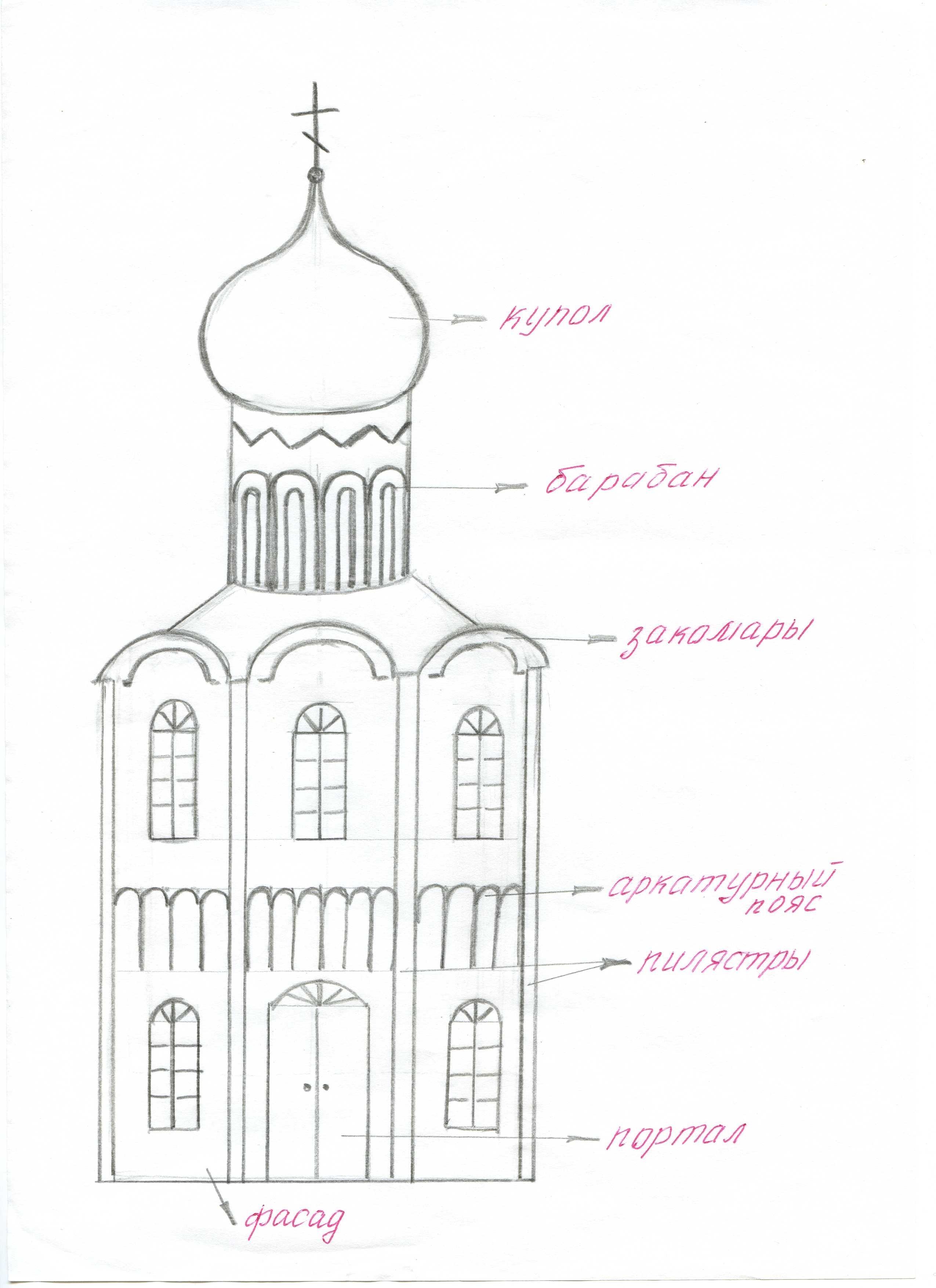Церковь рисунок пошагово