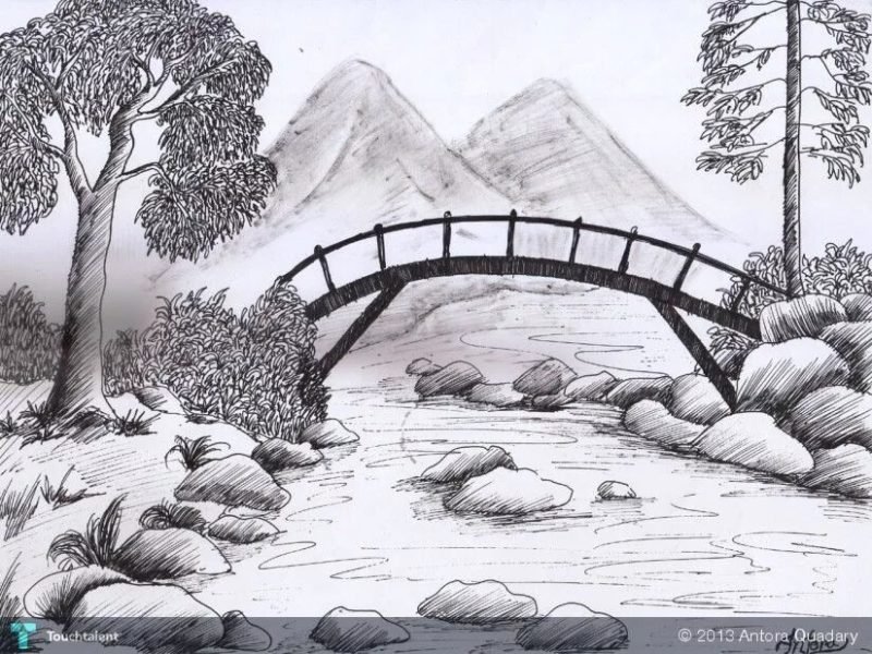 Пейзаж карандашом для срисовки