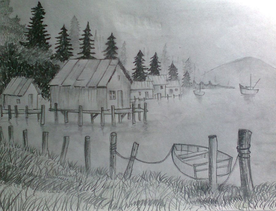 Пейзаж карандашом для срисовки