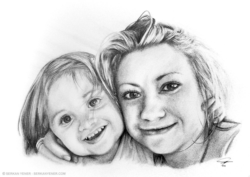 Портрет матери и ребенка карандашом