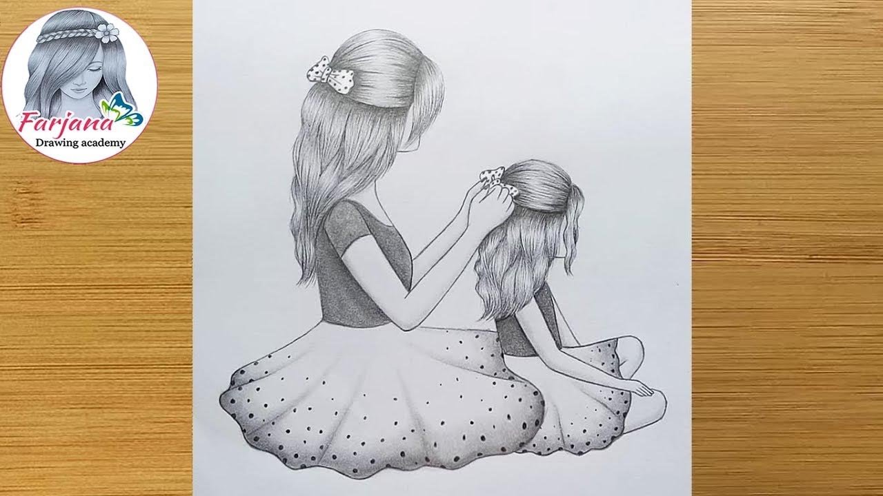 ![Мать и дочь рисунок карандашом]()