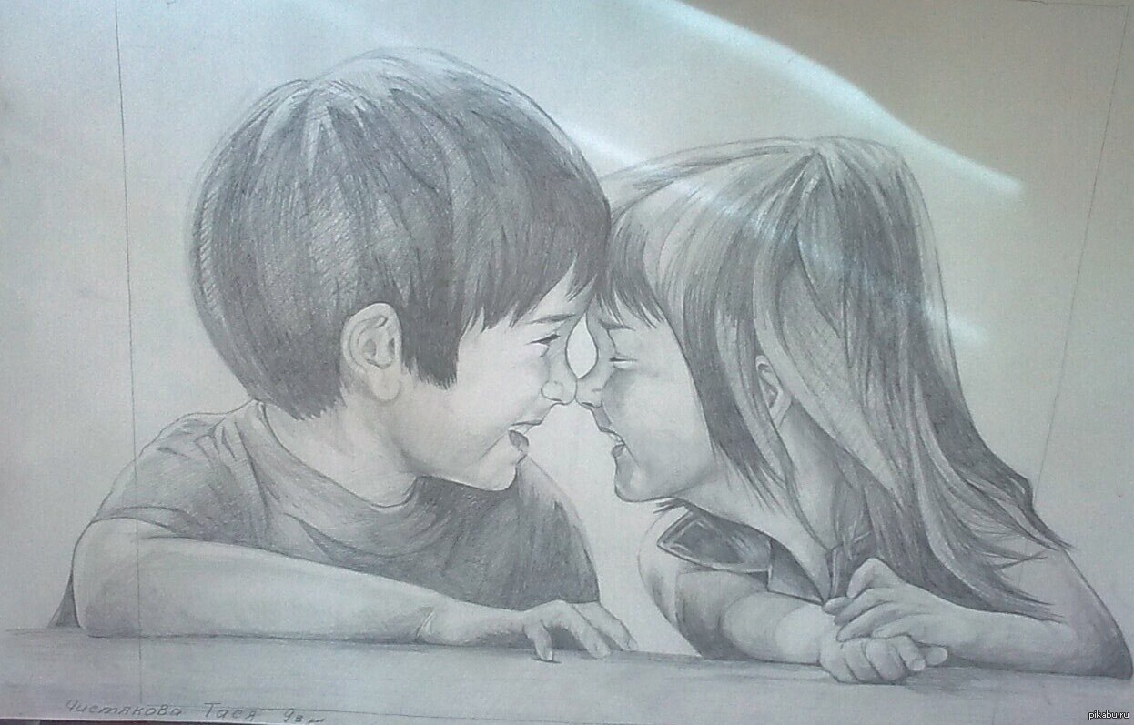![Мальчик и девочка рисунок карандашом]()