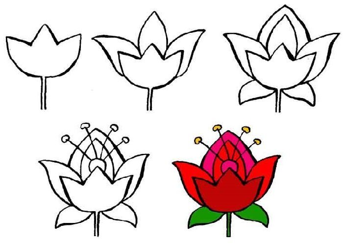 Рисунки цветов несложные для первого класса