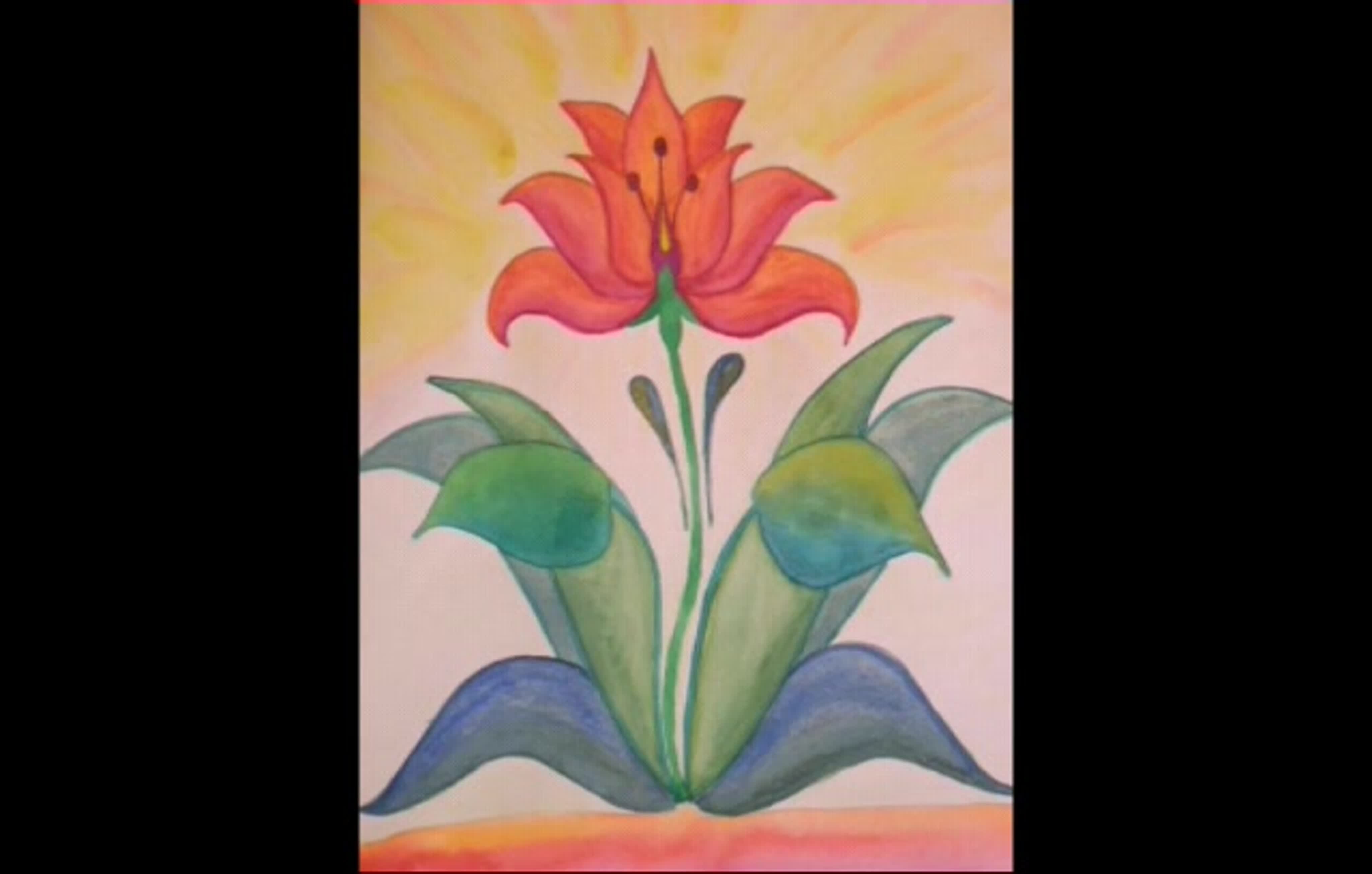 ![Простой цветок цветной карандашом]()
