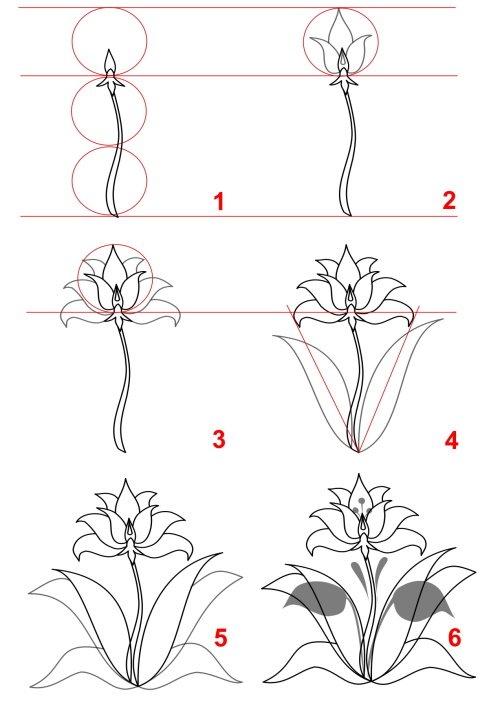 ![Лилия рисунок карандашом для детей]()