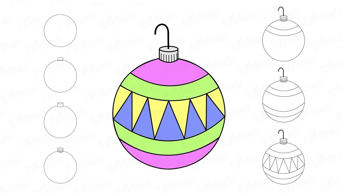 Поэтапное рисование новогодней игрушки