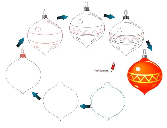 ![Елочная игрушка поэтапное рисование]()