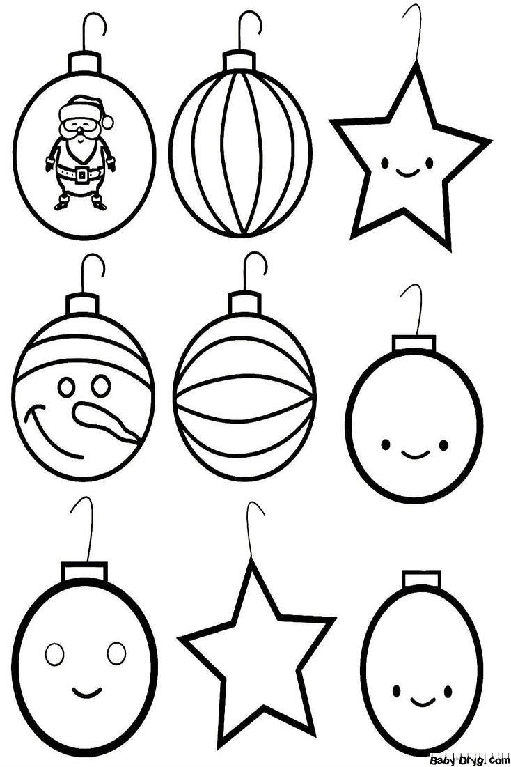 ![Новогодние разукрашки для детей елочные игрушки]()