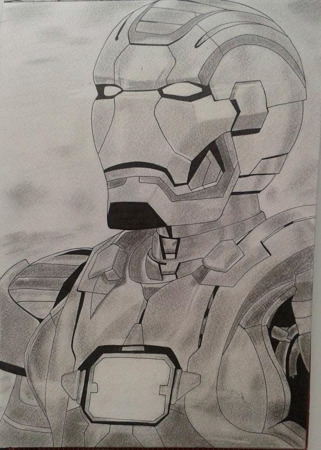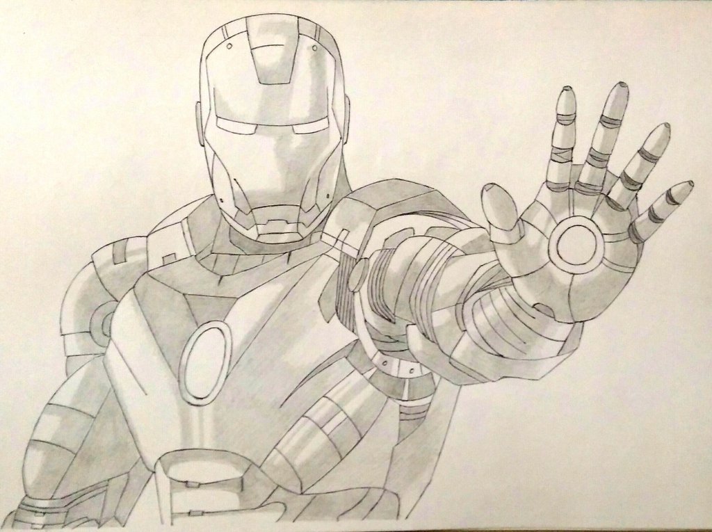 Железный человек рисунок простым карандашом
