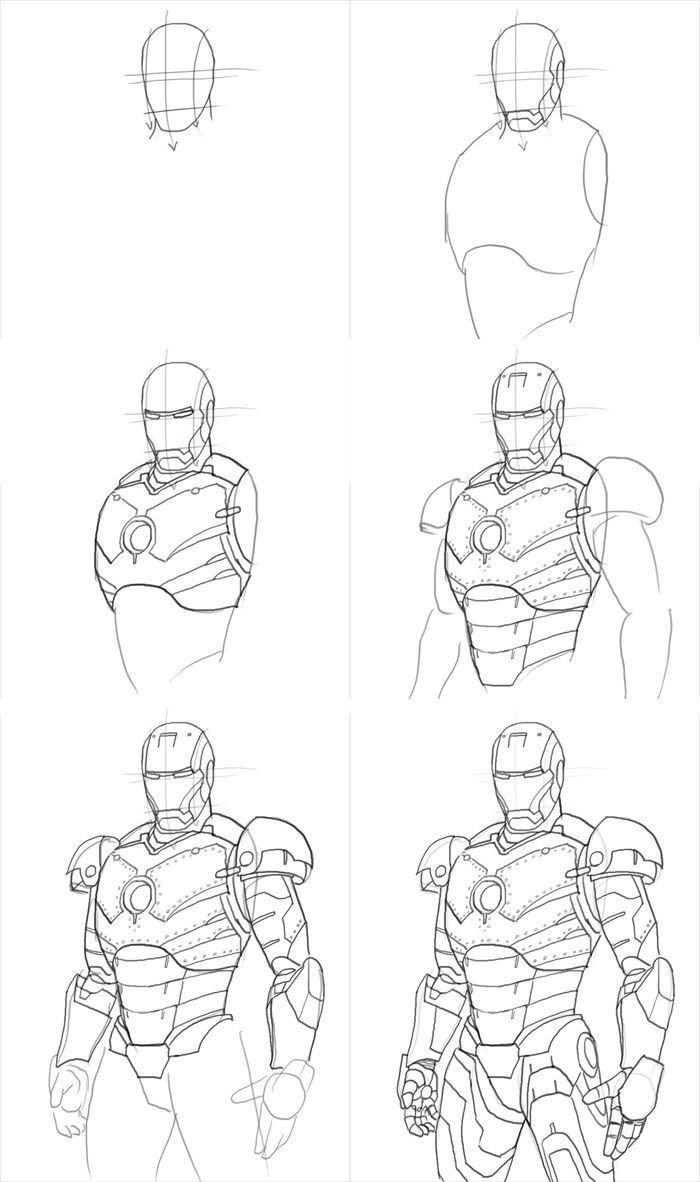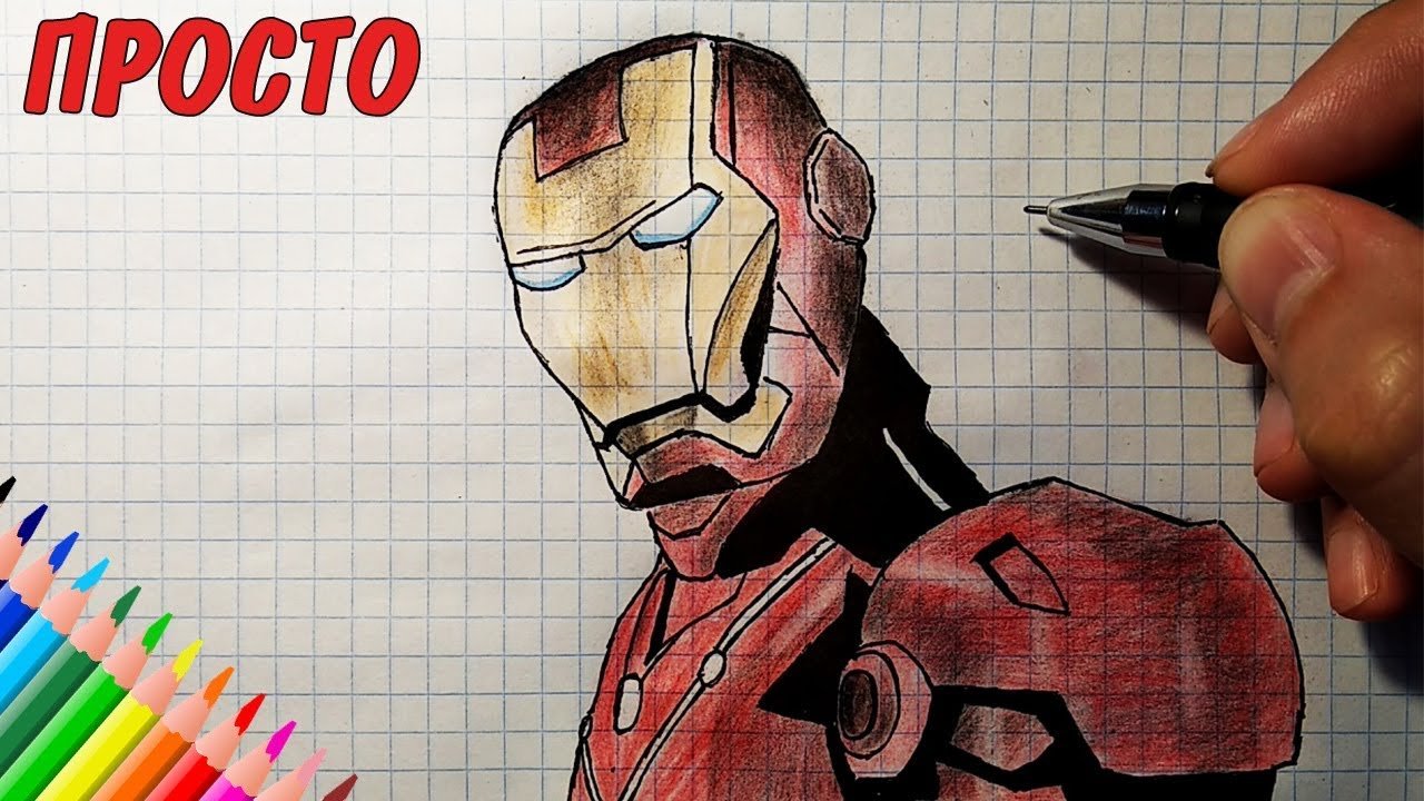 ![Железный человек срисовать легко]()