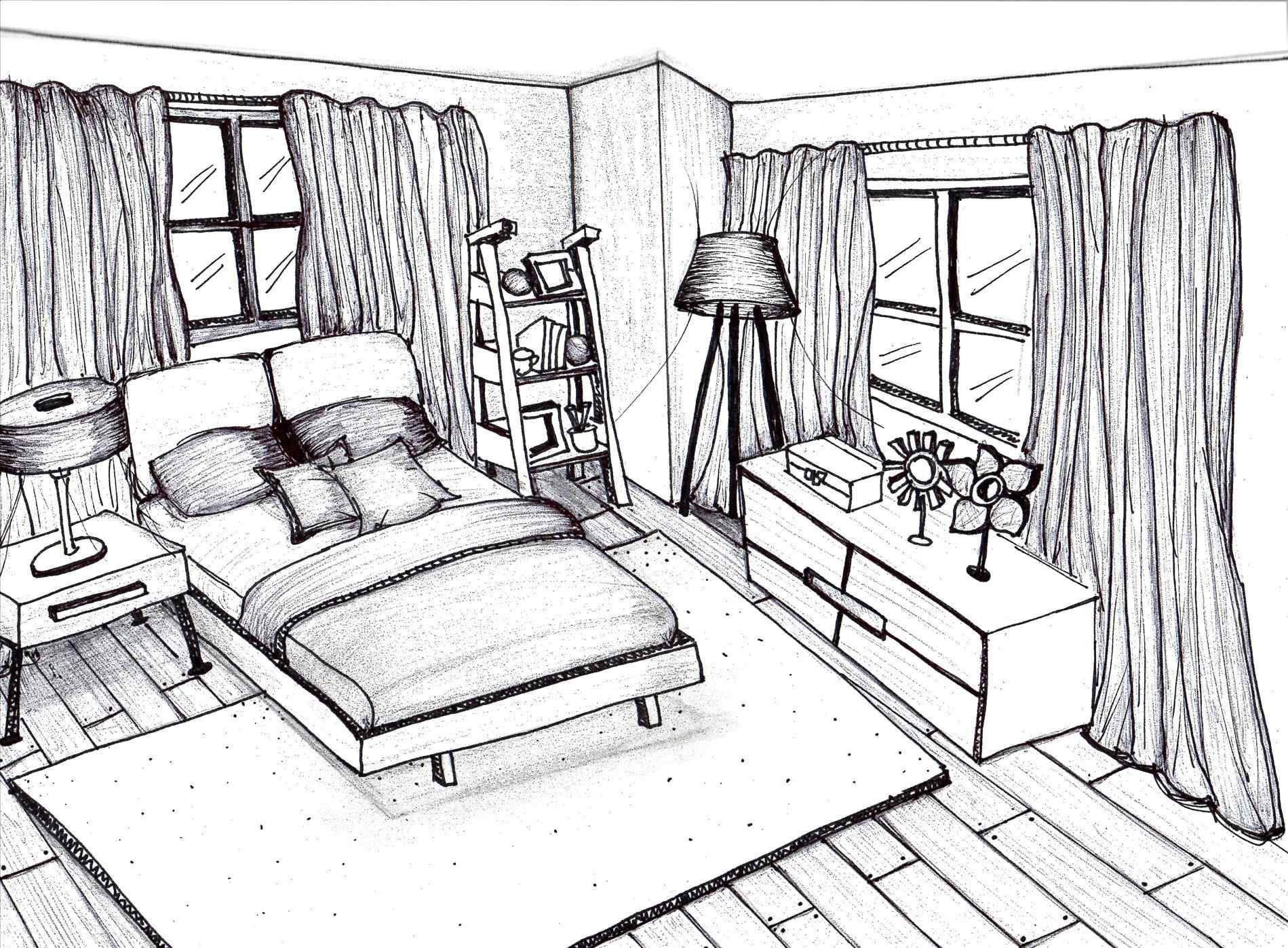 Рисунок комнаты карандашом
