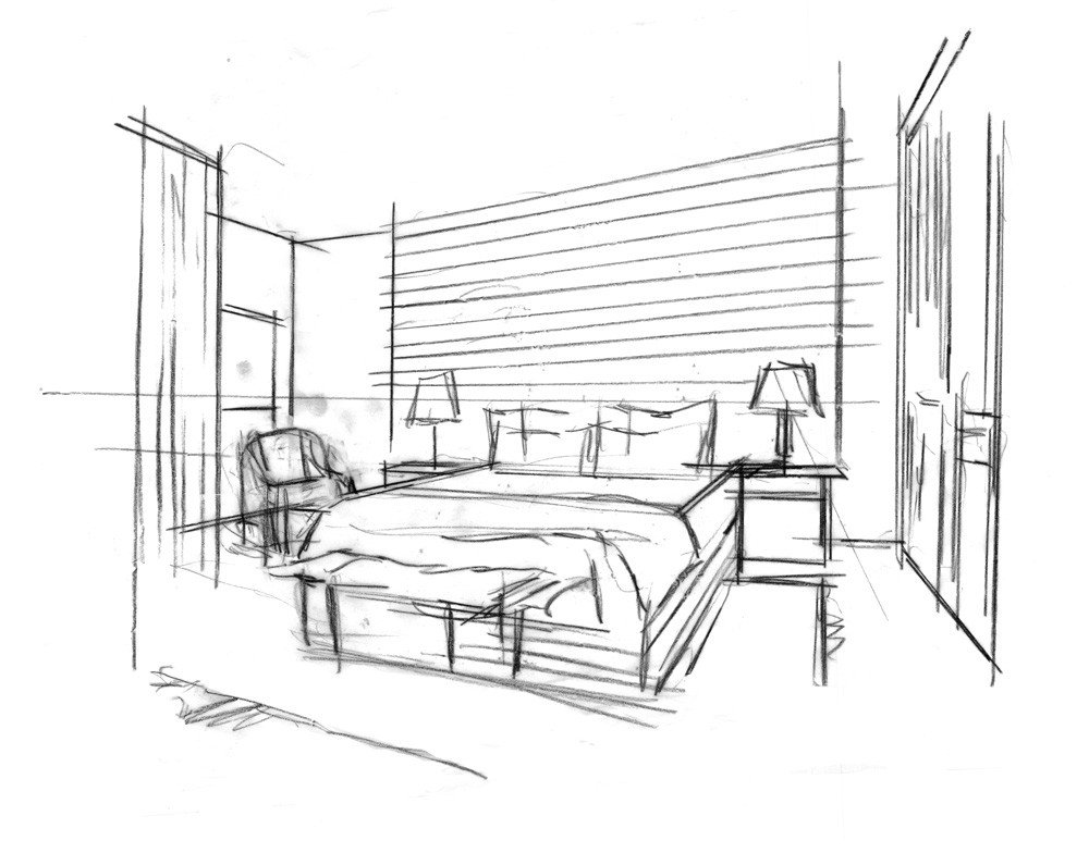 ![Карандашные Наброски интерьера]()