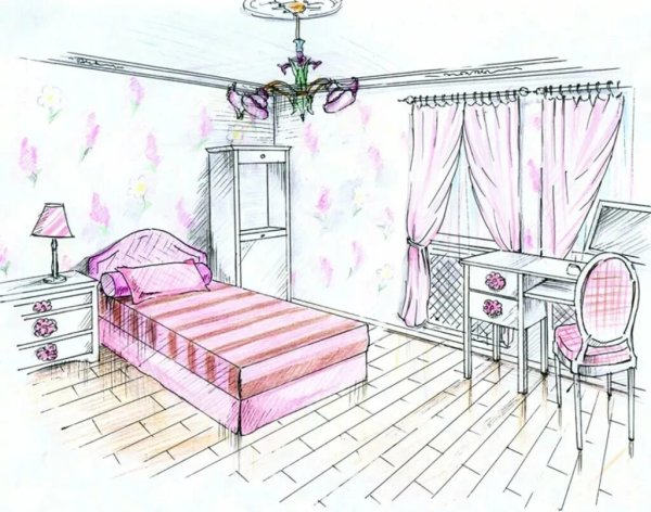 ![Рисунок комнаты карандашом]()