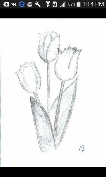 ![Тюльпаны простым карандашом рисунки]()