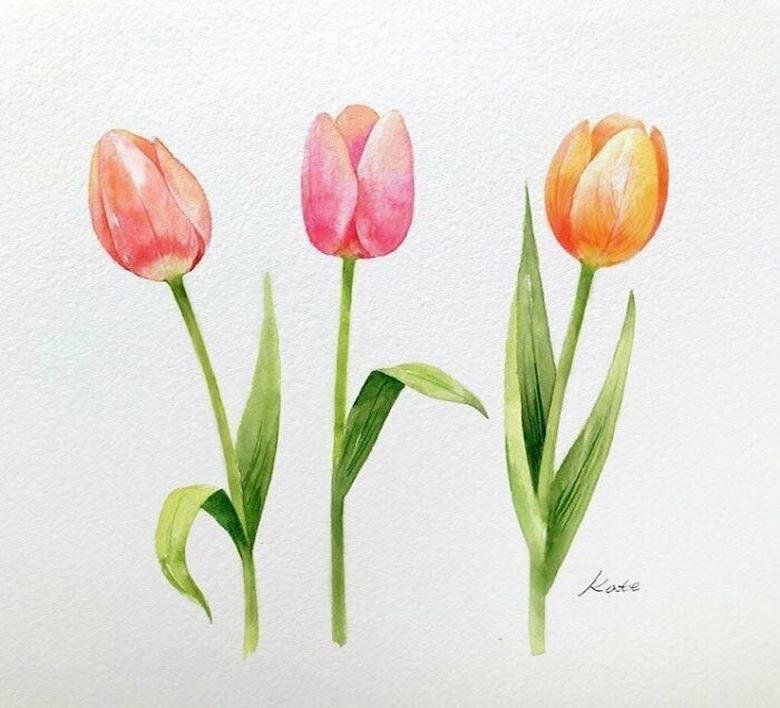 ![Тюльпаны акварелью]()