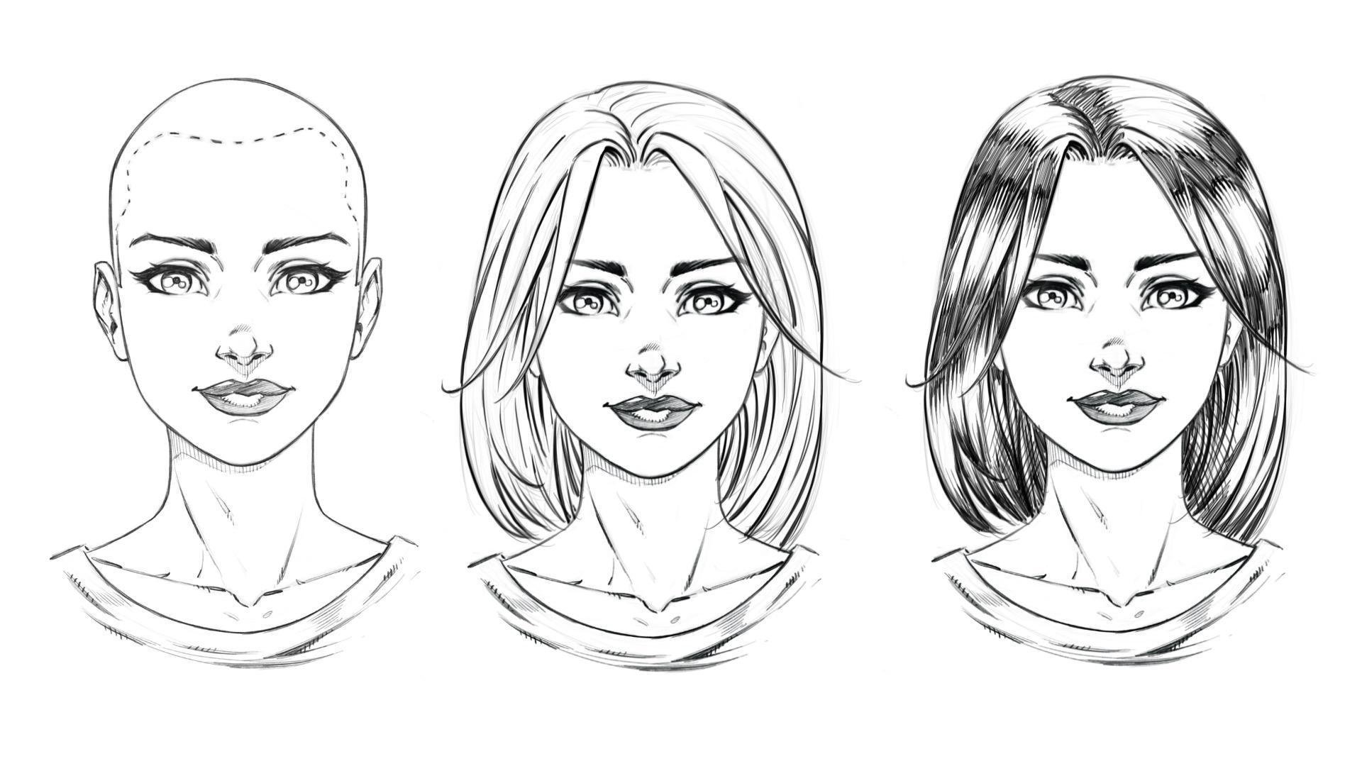 ![Прическа анфас карандашом]()