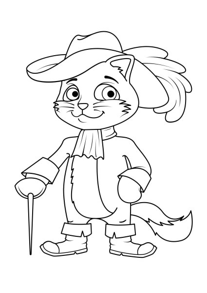 ![Раскраска кота в сапогах из сказки Шарля Перро]()