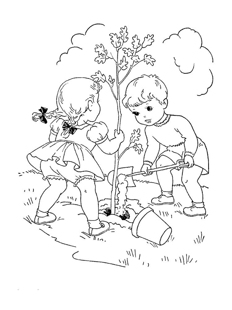 Дети сажают деревья раскраски для детей