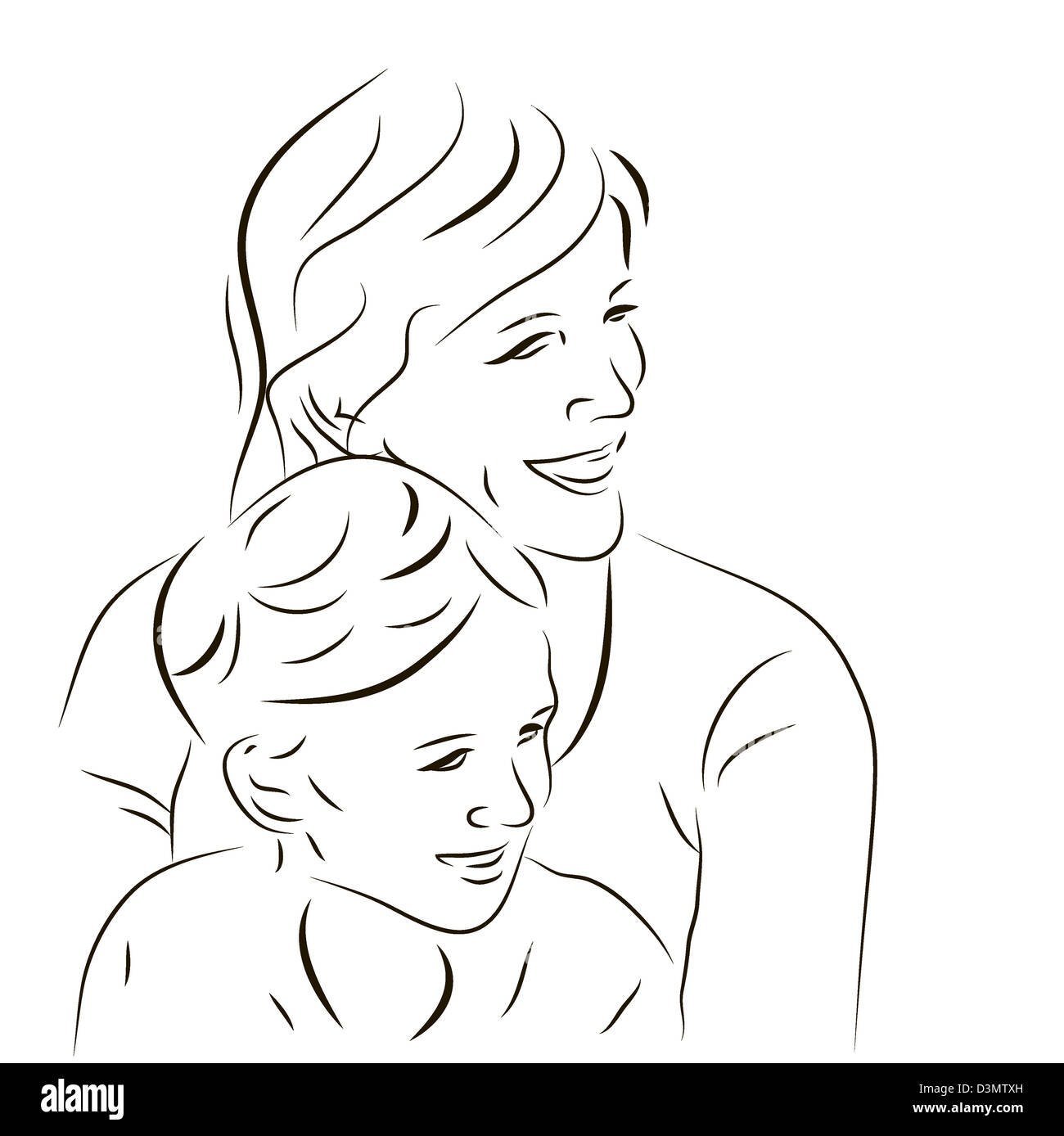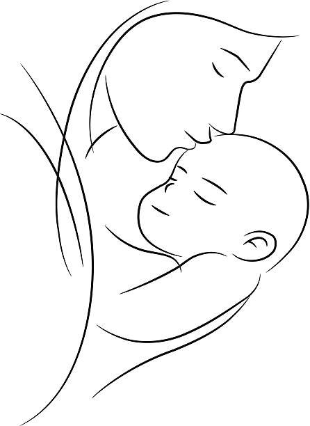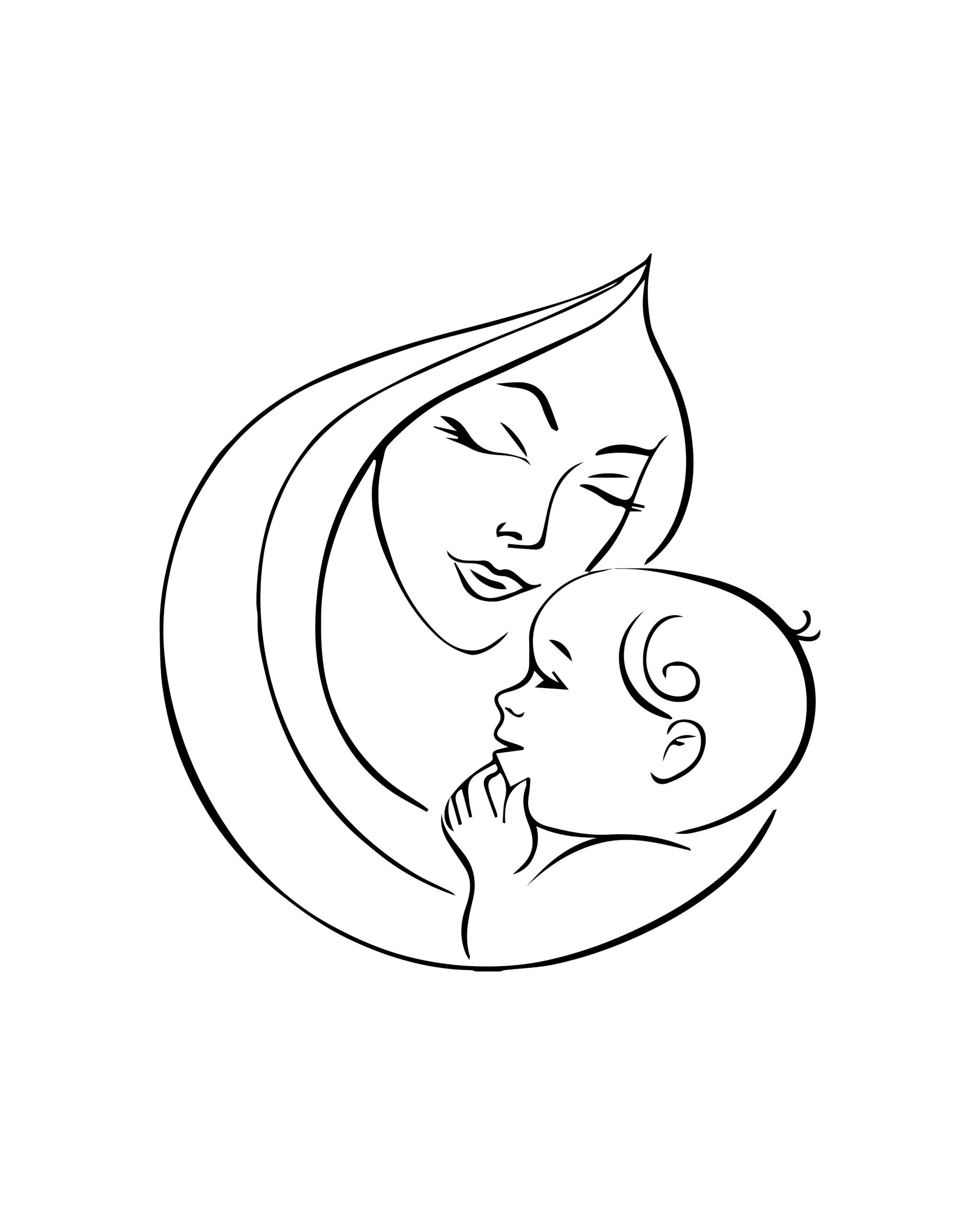 Мама и ребёнок рисунок для срисовки
