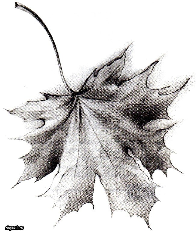 Лист клёна рисунок карандашом поэтапно