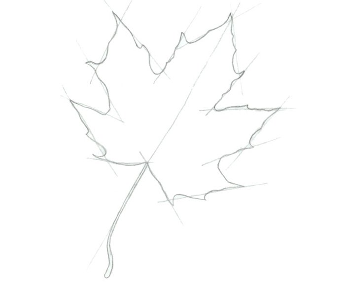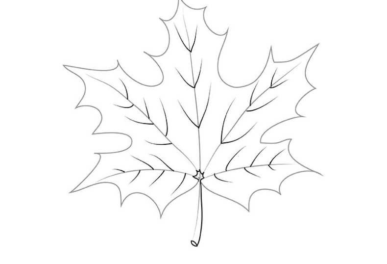 Нарисовать лист клена карандашом поэтапно