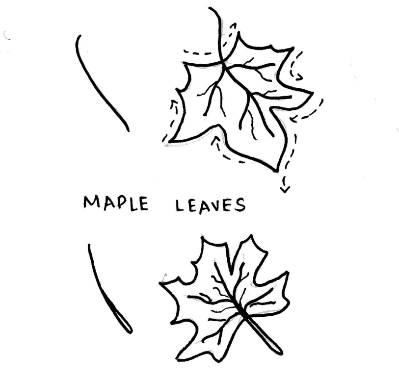 ![Нарисовать лист клена карандашом]()