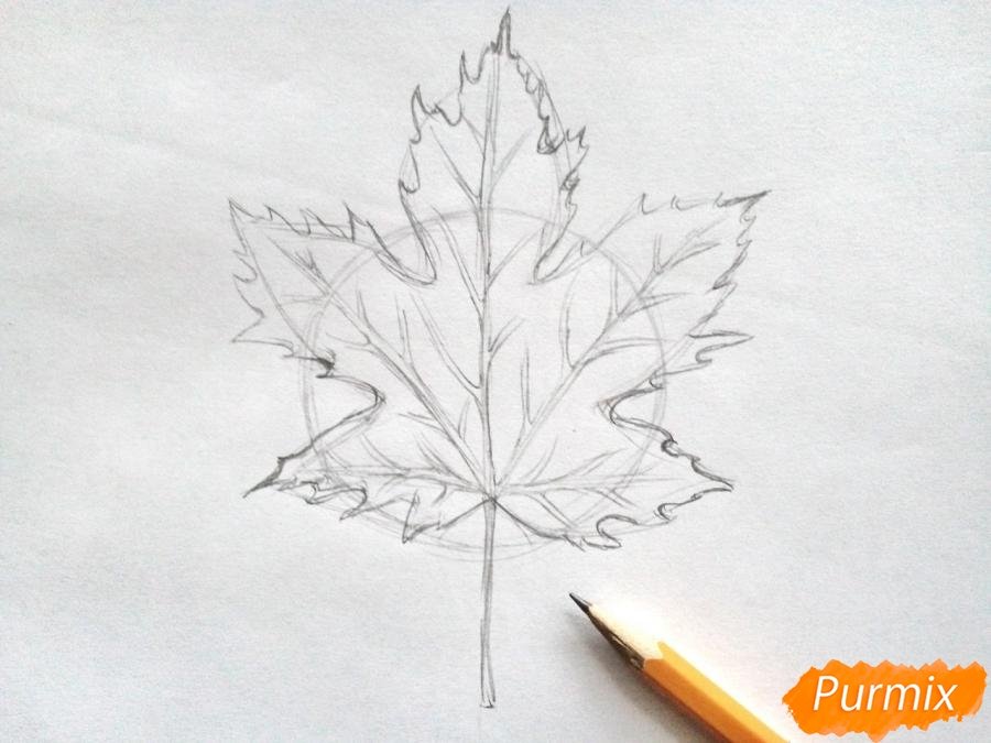 ![Лист клёна рисунок карандашом поэтапно]()