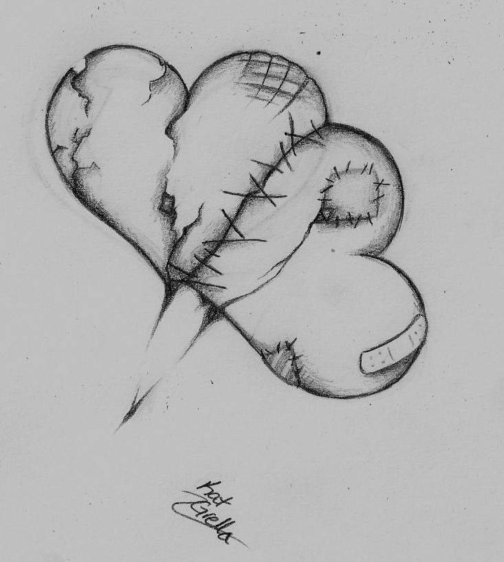 ![Лёгкие рисунки для срисовки карандашом разбитое сердце]()