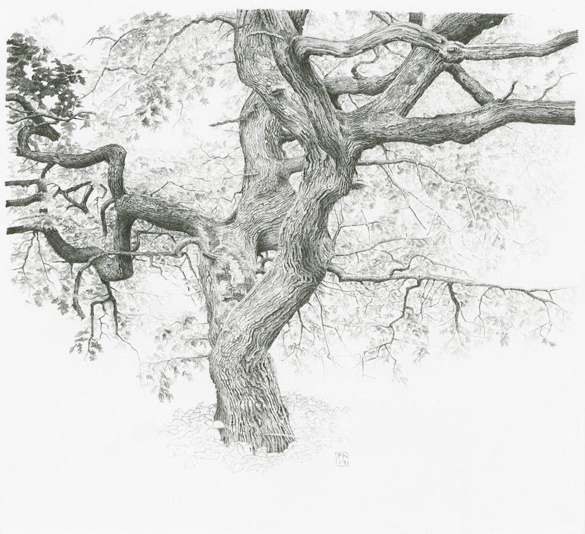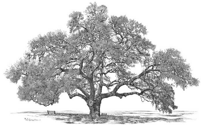 ![Зарисовка дуба карандашом]()