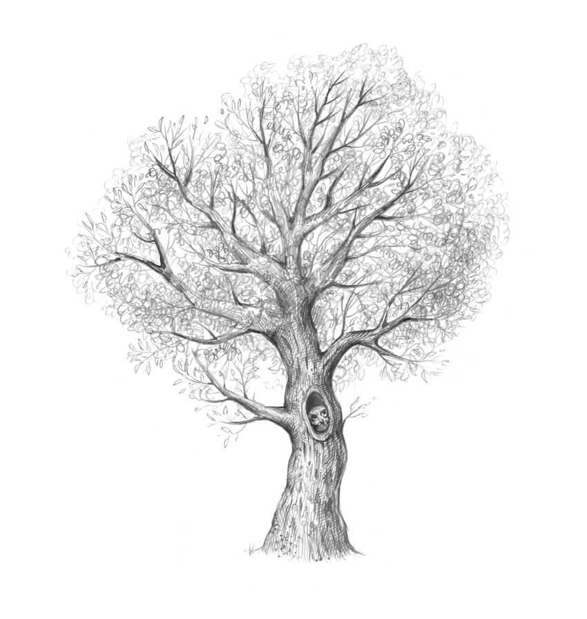 Крона дерева карандашом