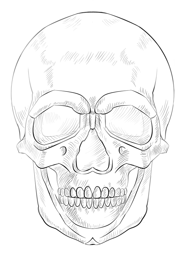 ![Скетч черепа спереди]()