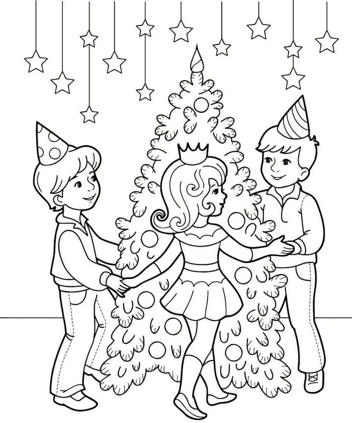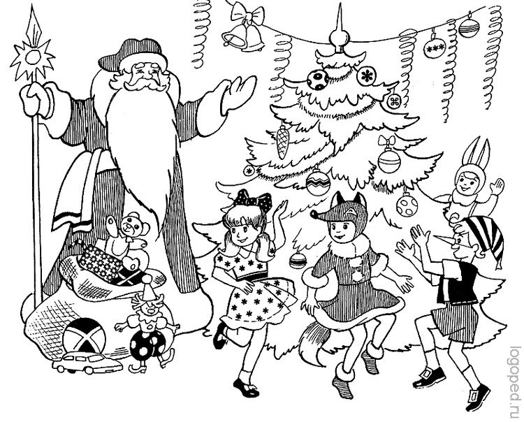 ![Раскраска новый год хоровод]()