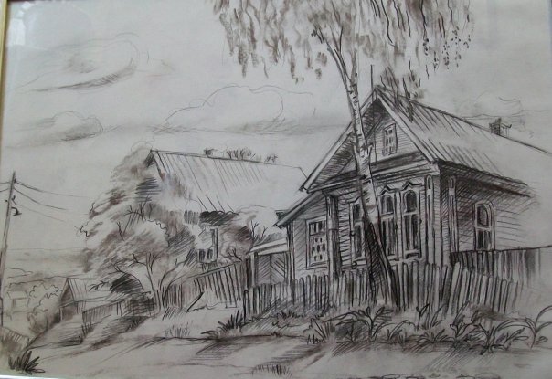 ![Зарисовки деревенских домов]()