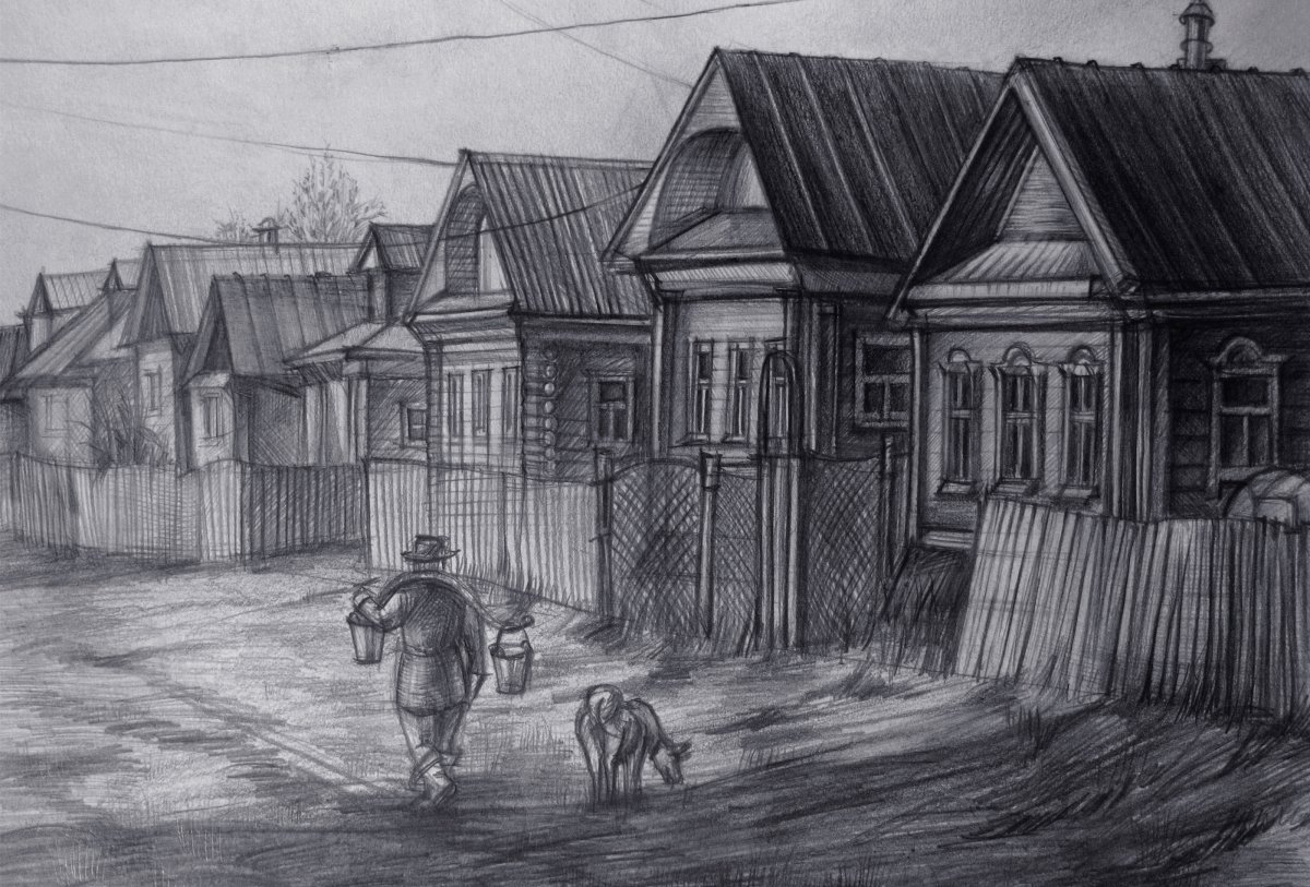 Деревня карандашом