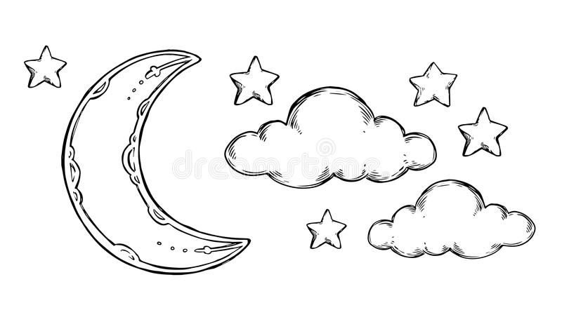 Луна и звезды срисовать
