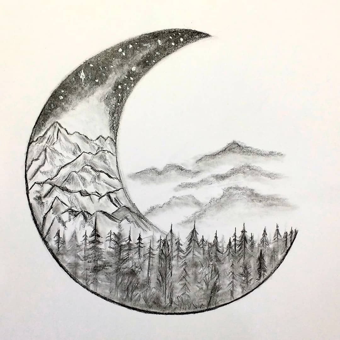 Лунный пейзаж рисунок карандашом