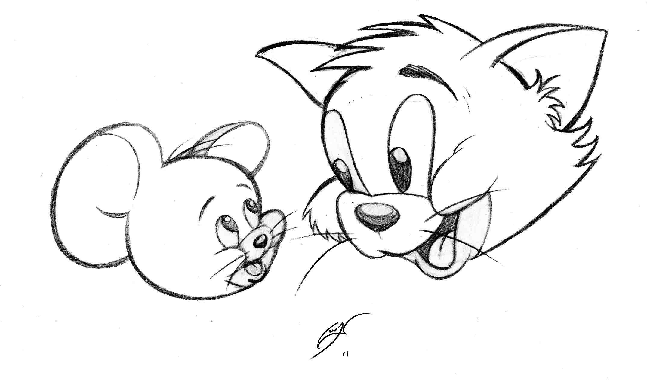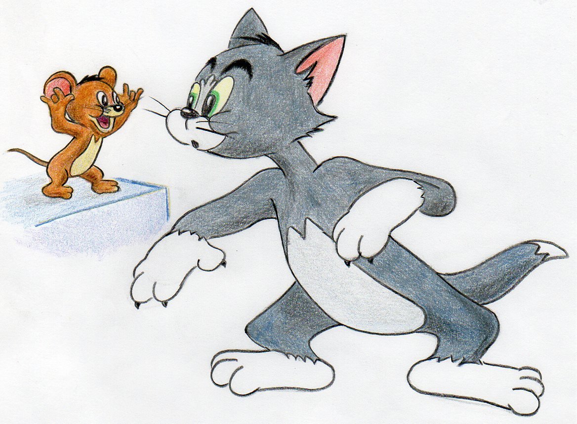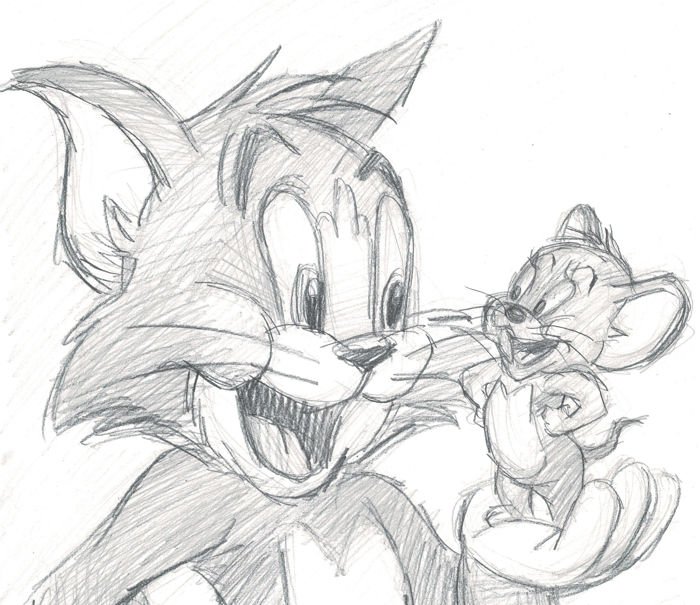 ![Рисунки из мультфильма том и Джерри для срисовки]()