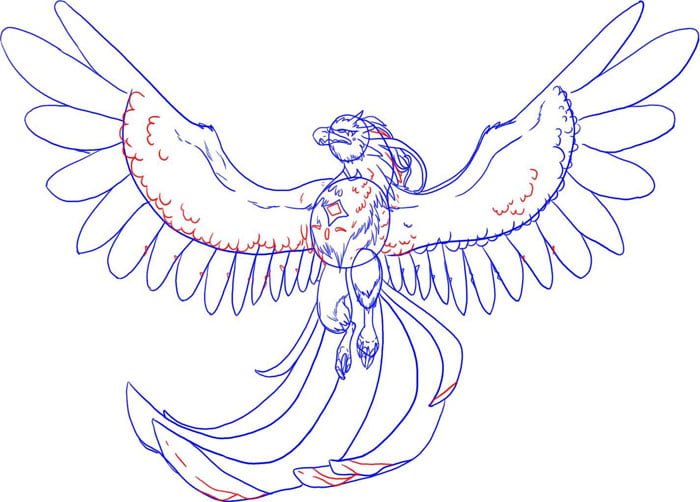 Нарисовать птицу Феникс поэтапно