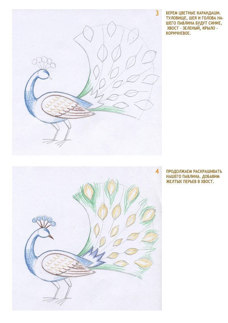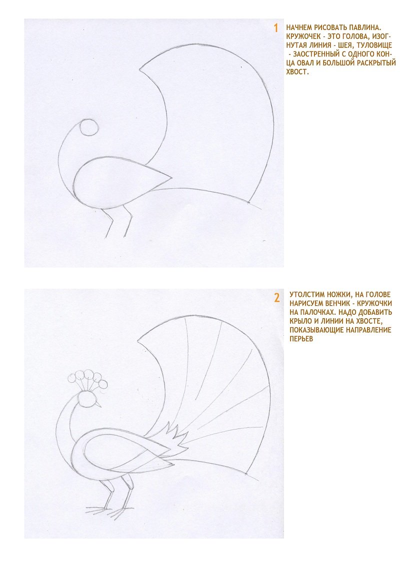 Павлин поэтапное рисование для детей