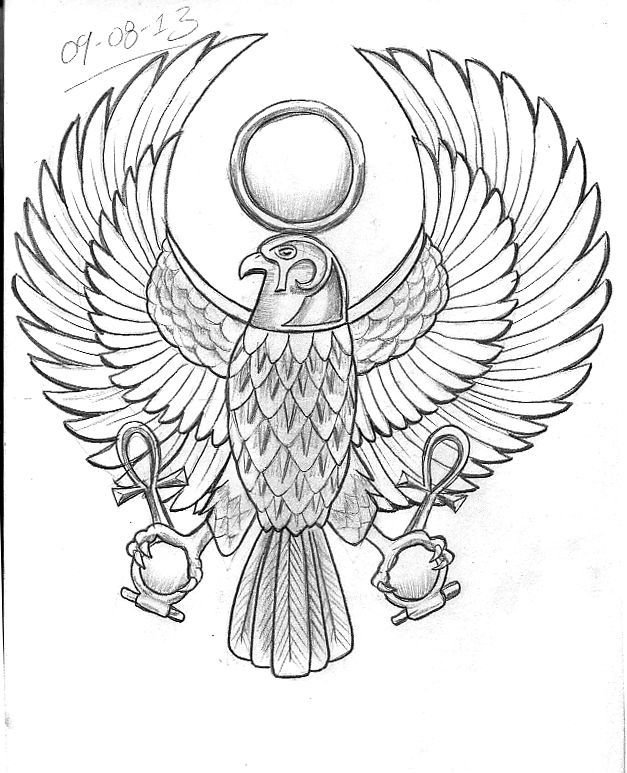 ![Египетский Сокол тату эскиз]()