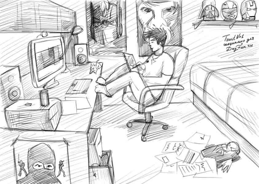 Этот уникальный рисунок выполнен простым карандашом и запечатлевает человека, сидящего за компьютером. Он передает атмосферу современной жизни, где цифровые технологии играют ключевую роль. Разнообразные детали в этой работе подчеркивают важность компьютера в нашей повседневной деятельности: клавиатура, мышь, монитор и другие элементы создают ощущение реализма и позволяют нам почувствовать себя героем этой истории. Рисунок просто и элегантно передает суть работы за компьютером и может стать отличным украшением любого интерьера или источником вдохновения для любителей новых технологий.