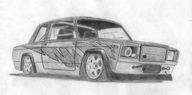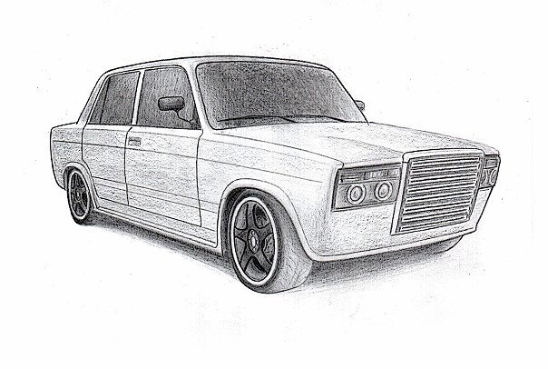 ![ВАЗ 2107 рисунок карандашом сбоку]()