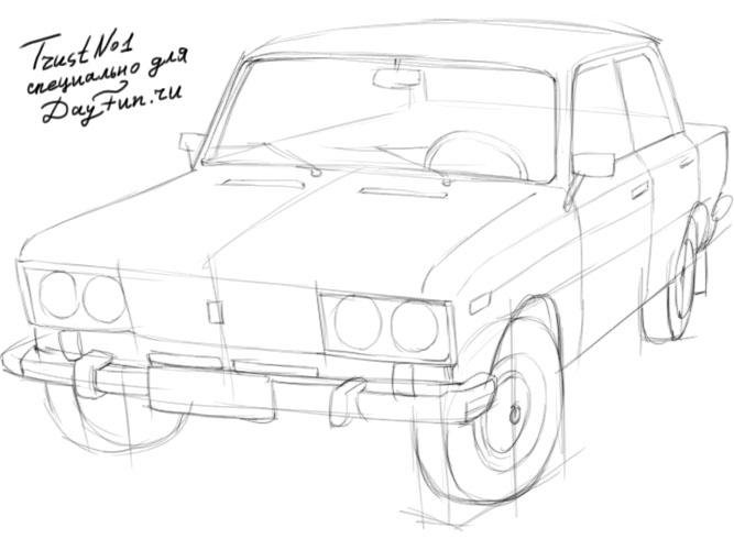 ![Рисунок ВАЗ 2101 карандашом спереди]()