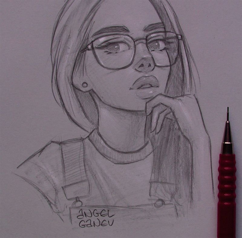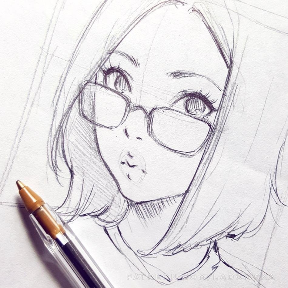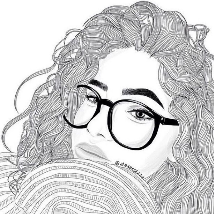 ![Девушка в очках рисунок карандашом]()