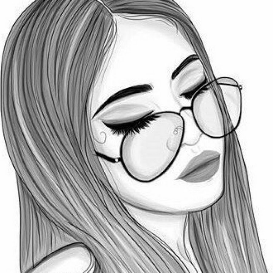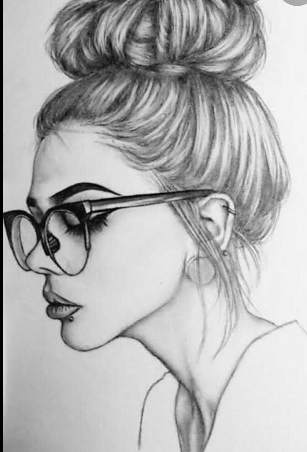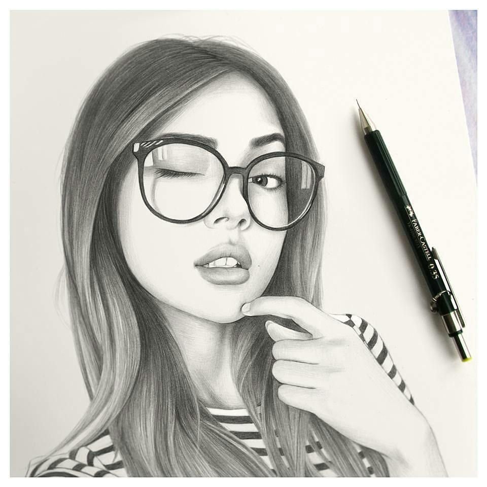 ![Девушка с очками рисунок карандашом]()