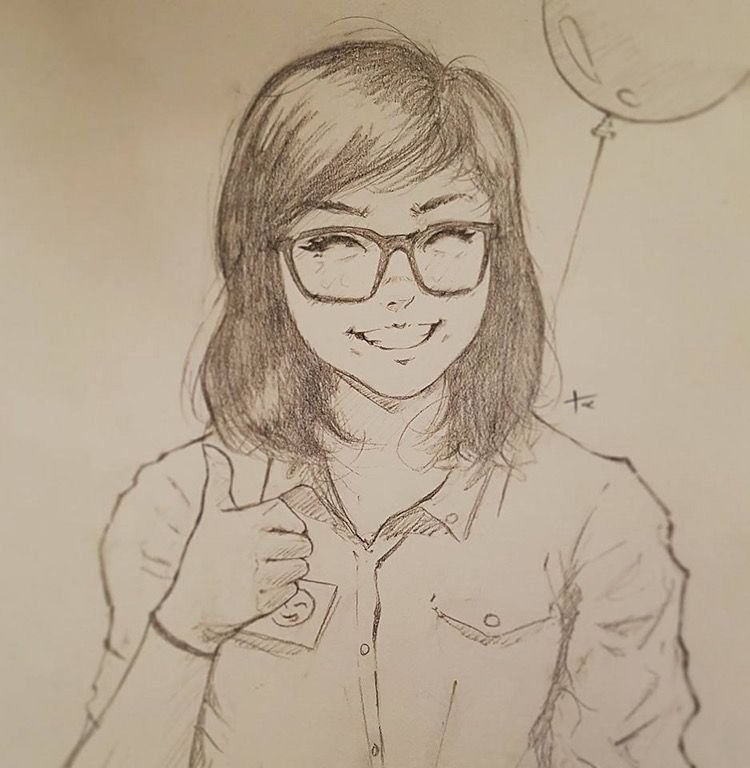 ![Зарисовка девушки в очках]()