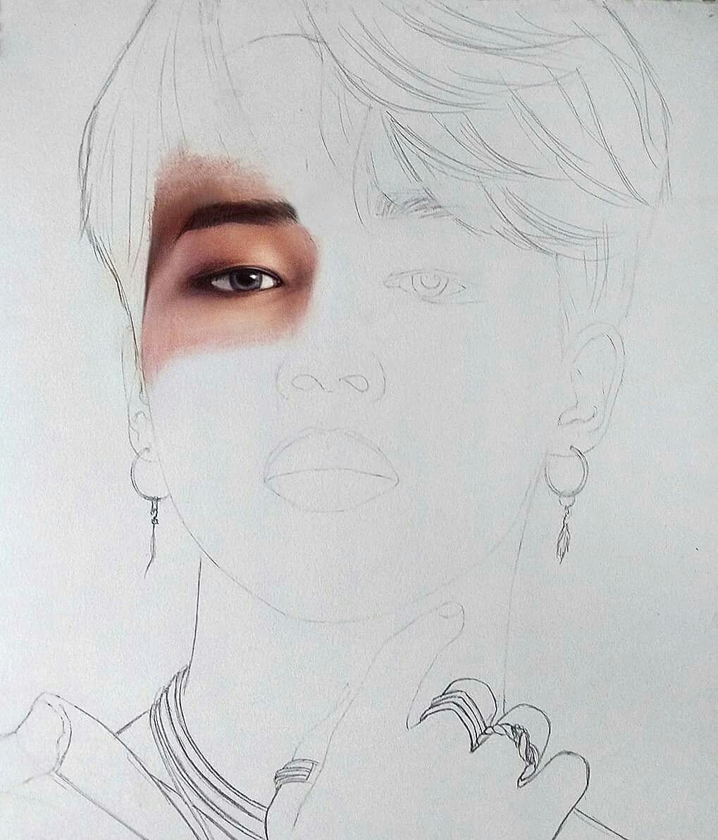 Профиль лица Чимин из БТС карандашом