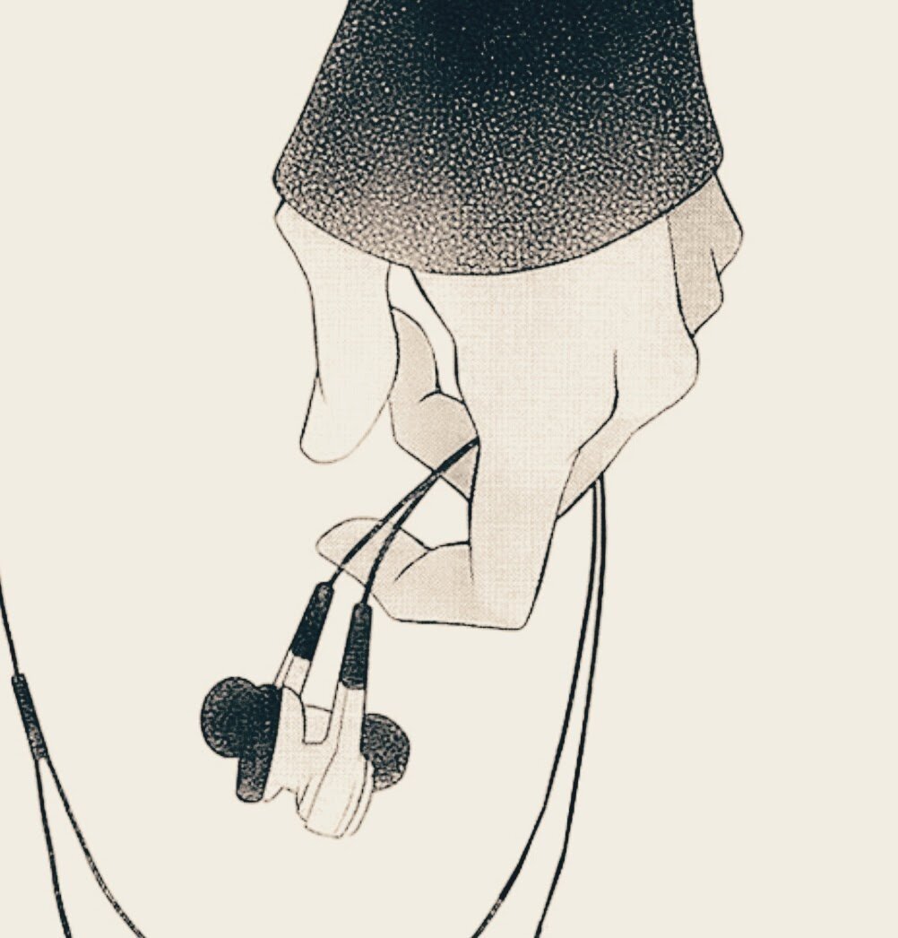 ![Нарисованная девушка в наушниках]()