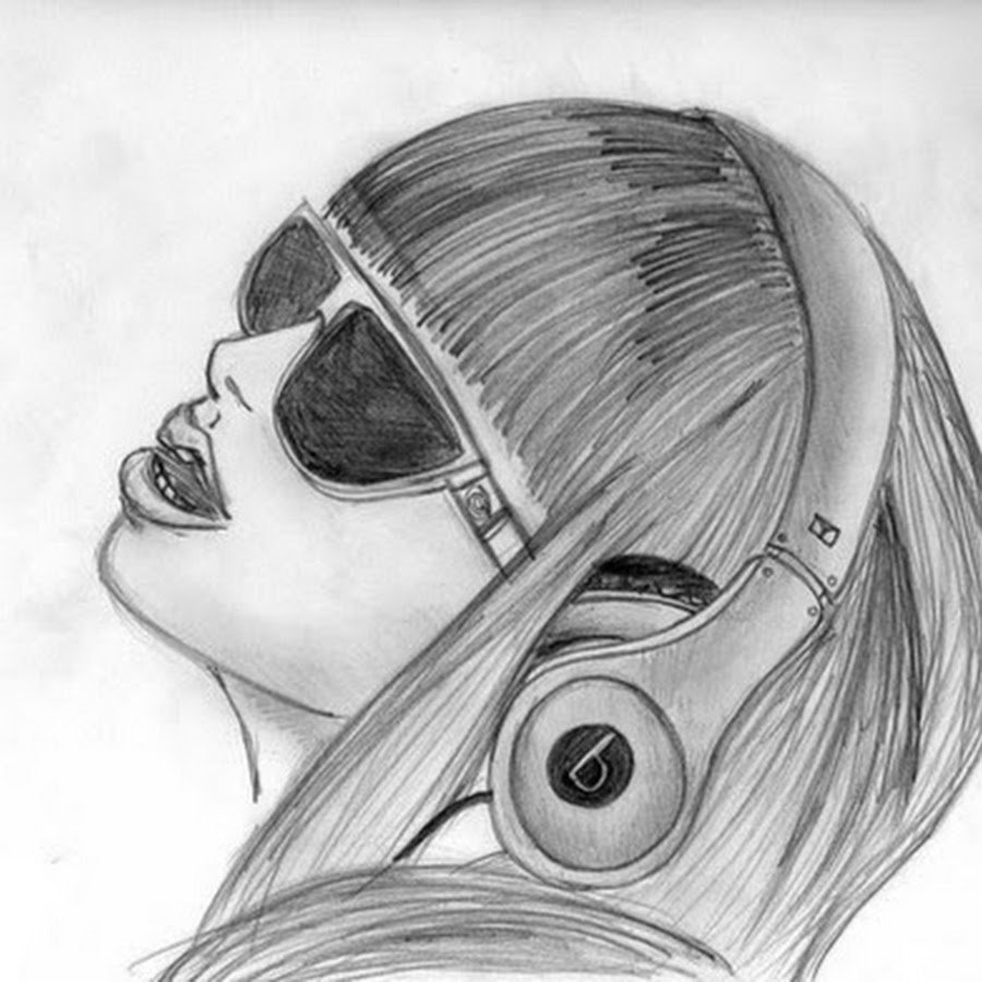 Девушка с наушниками рисунок карандашом