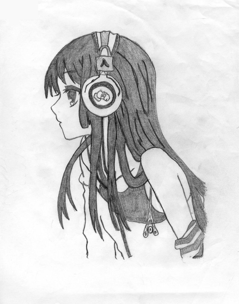 Аниме девушка в наушниках карандашом